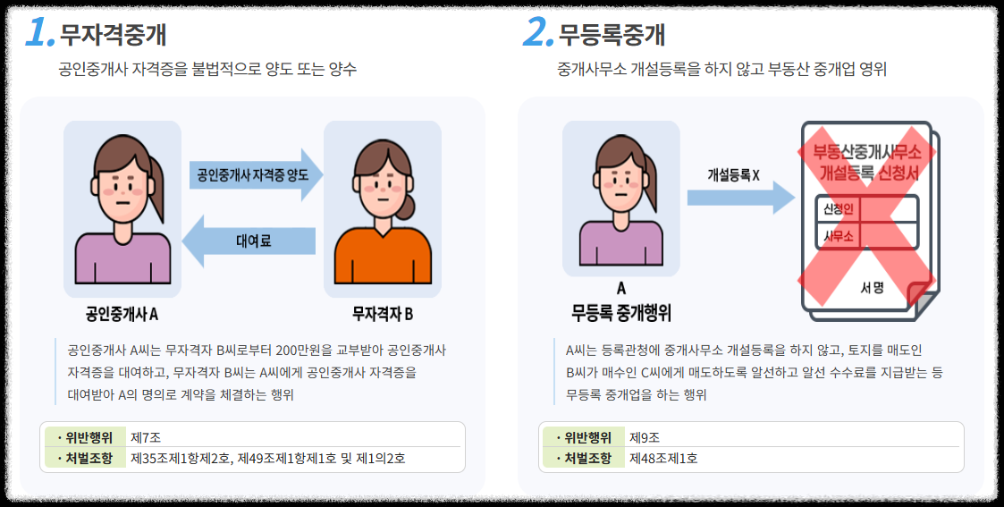 - 무등록 중개업자(폐업, 등록취소의 경우 포함)